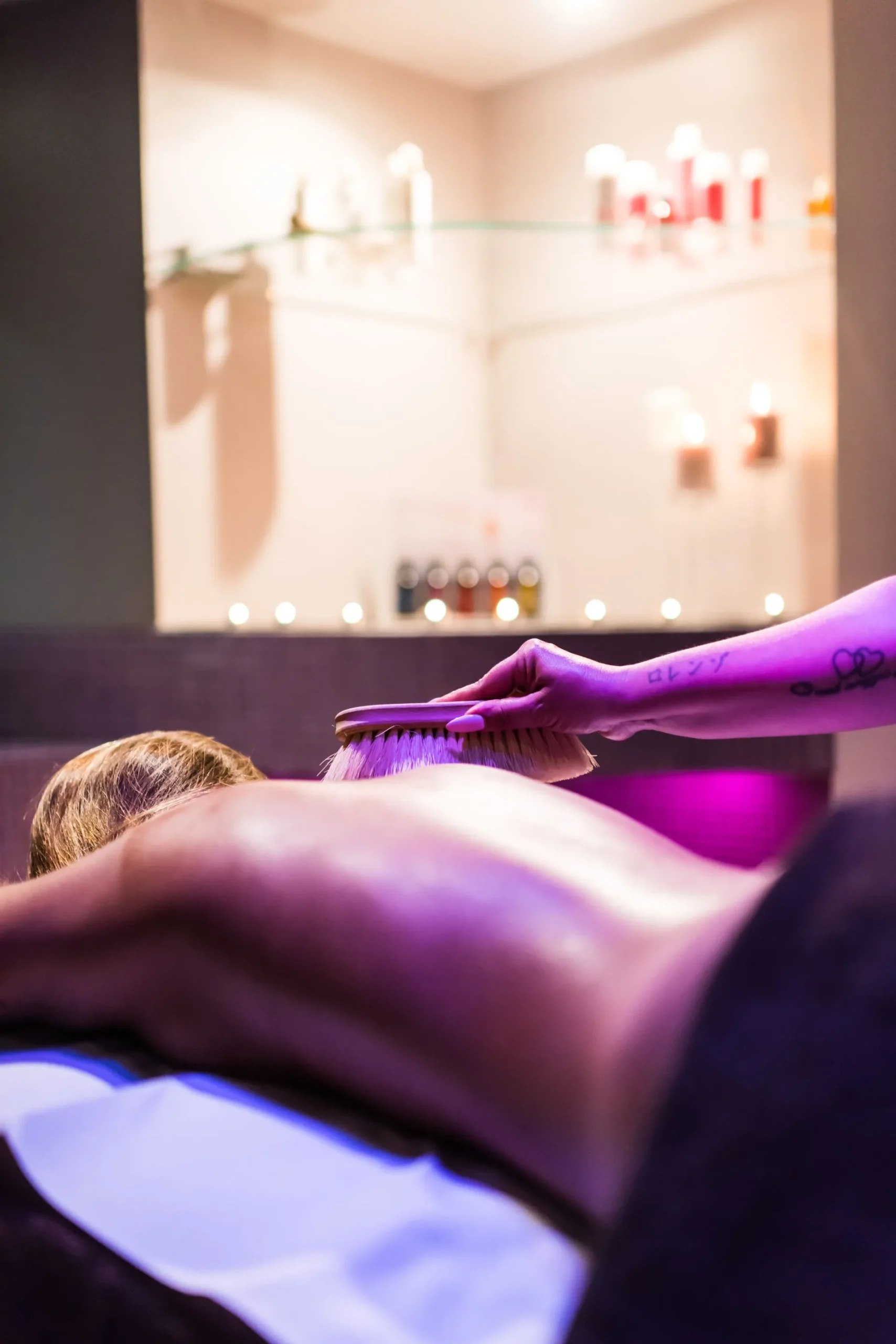 Rituale relax a lume di candela che inizia con il Dry Brushing Viso/Corpo (Esfoliazione Detox, elimina ristagni di liquidi e tossine, ossigenando il corpo e donando magnifici effetti sull’umore)…e prosegue con un Soft Massage Idratante con olio caldo + oli essenziali aromatizzati, si conclude con soft snack, tisana.