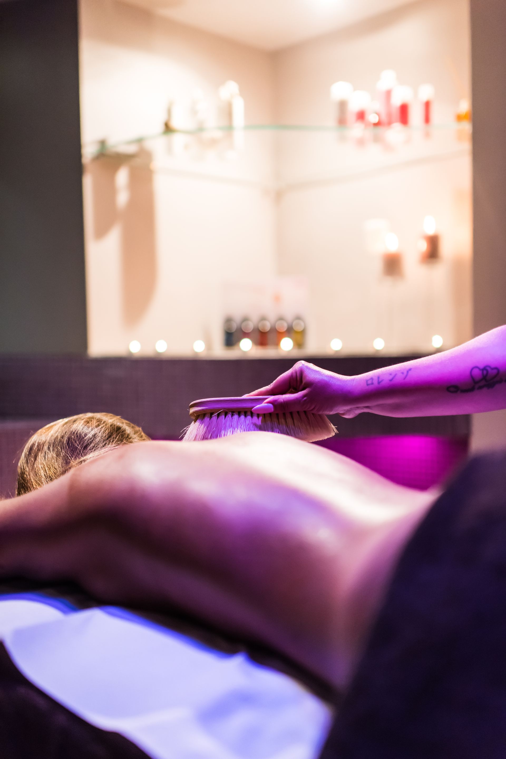 Rituale relax a lume di candela che inizia con il Dry Brushing Viso/Corpo (Esfoliazione Detox, elimina ristagni di liquidi e tossine, ossigenando il corpo e donando magnifici effetti sull'umore)
